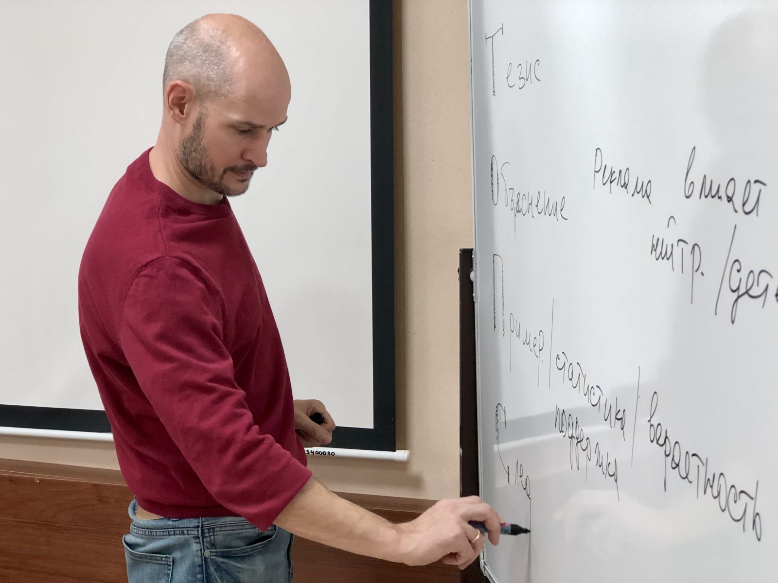 "Уже больше полугода мы с молодыми людьми практикуемся в построении аргументов и выстраивании логических цепочек, учимся правильно структурировать свою речь, выступать перед публикой и критически мыслить", – сказал Павел Жолобов.