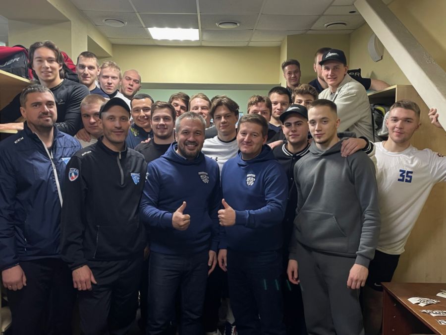 Перед поездкой хоккеистам сделали единую форму – бронированные синие толстовки. Капитан команды Владислав Рожков вручил одну из толстовок ректору.