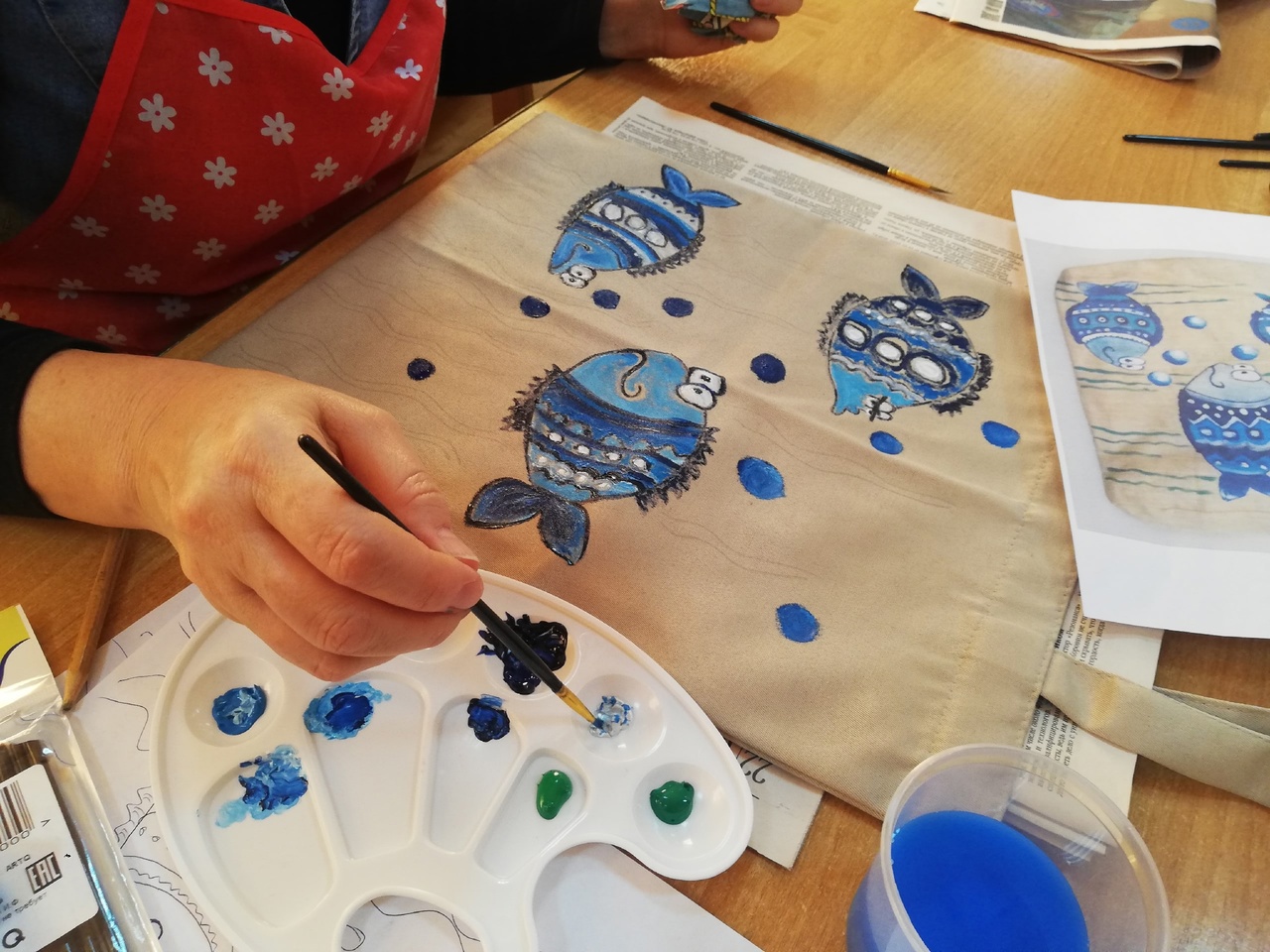Сегодня в Центральной библиотеке прошел очередной мастер-класс «Роспись сумки-шопера» для участниц клуба «Мастерица».