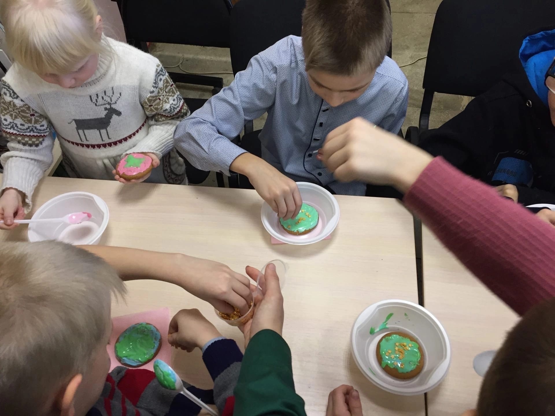 Представители отряда перевоплотились в сказочных персонажей — Олени, Дед Мороз, Снегурочка и Баба Яга. Дети спасали праздник танцами, песнями и загадками, который хотела забрать Баба Яга. После был мастер-класс, где дети сами сделали имбирные пряники. Теперь ёлку смогут украшать не только новогодние игрушки, но и пряники, сделанные своими руками.