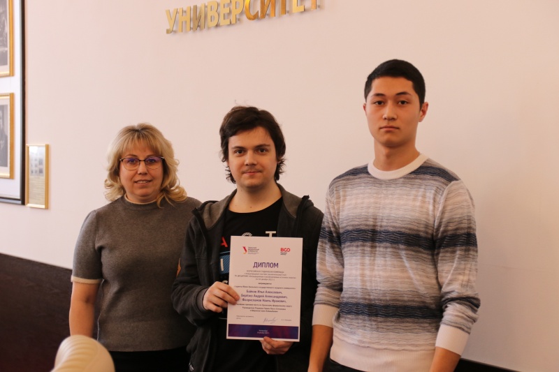 4. Команде ЮУрГАУ , занявшей призовое место по Уральскому федеральному округу во Всероссийской студенческой олимпиаде с международным участием (заключительный этап) по дисциплине «Нетрадиционные и возобновляемые источники энергии», Уральский федеральный университет имени первого Президента России Б.Н. Ельцина вручает диплом. В составе команды Байков Илья Алексеевич, Берёзко Андрей Александрович, Фахрисламов Наиль Иранович, научные руководители Шерьязов Сакен Койшыбаевич, профессор кафедры энергообеспечения и автоматизации технологических процессов и Пташкина – Гирина Ольга Степановна, доцент кафедры энергообеспечения и автоматизации технологических процессов;