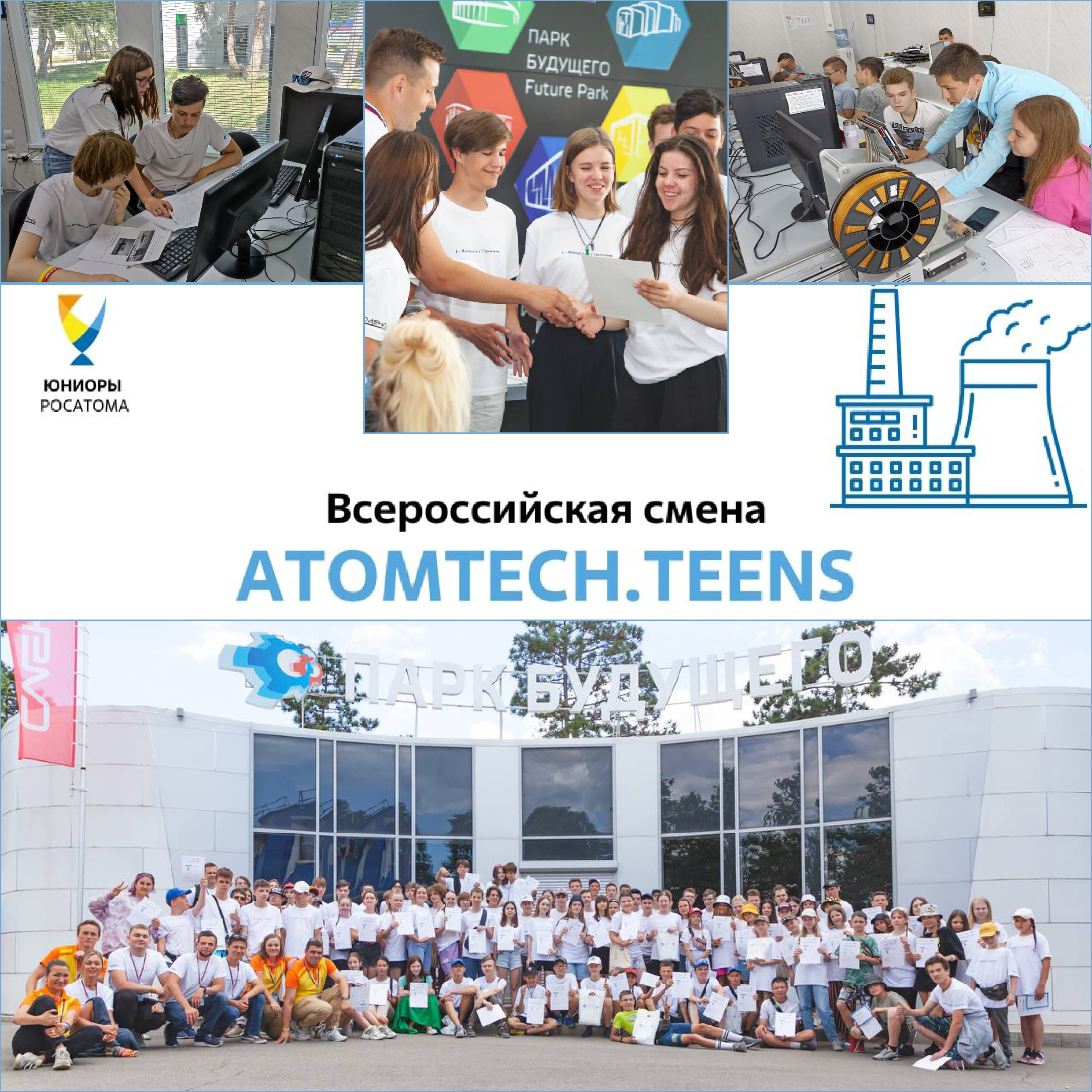 Тематическая образовательная программа «ATOMTECH.TEENS» прошла на базе Всероссийского детского центра «Смена» в Краснодарском крае с 30 мая по 17 июня 2022г. Участие в ней приняли 98 юниоров из 29 регионов и 47 городов нашей страны).