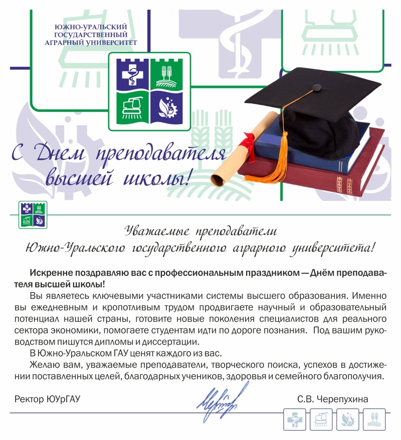 Уважаемые преподаватели Южно-Уральского государственного аграрного университета! Искренне поздравляю вас с профессиональным праздником — Днём работника высшей школы!