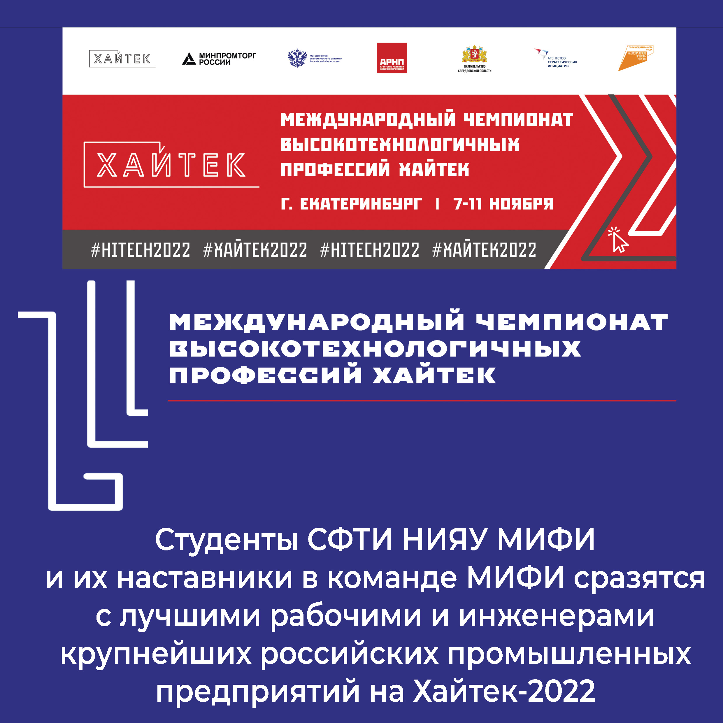 Студенты Снежинского физико-технического института НИЯУ МИФИ сразятся с лучшими рабочими и инженерами крупнейших российских промышленных предприятий на Международном чемпионате высокотехнологичных профессий Хайтек-2022