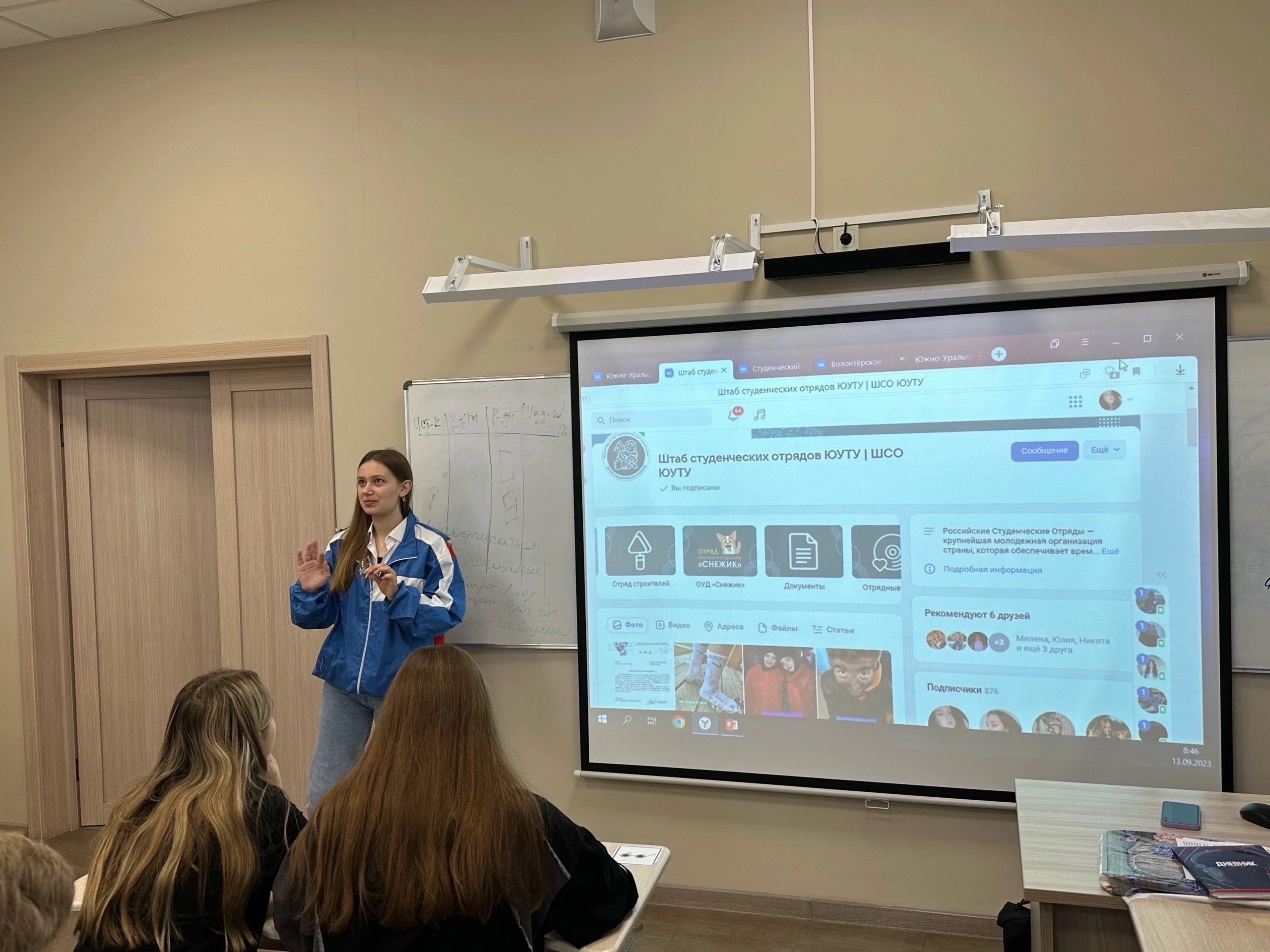 Командир и боец СПО «PoweR» Ольга Шишкина и Марина Кокорева 13 сентября провели агитацию для студентов ЮУТУ. В рамках встречи девушки рассказали о Штабе студенческих отрядов и о том, какие направления есть в нашем Университете. Отдельную часть занимала беседа именно про Студенческий педагогический отряд «PoweR». Девушки рассказали про все тонкости работы вожатого, куда можно поехать работать летом и как вступить в отряд.