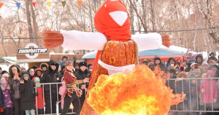 В финале праздника в центре парка сожгли трехметровую фигуру Масленицы. Этот ритуал символизирует проводы зимы. На Руси чучело Масленицы было принято сжигать для того, чтобы год был урожайным.