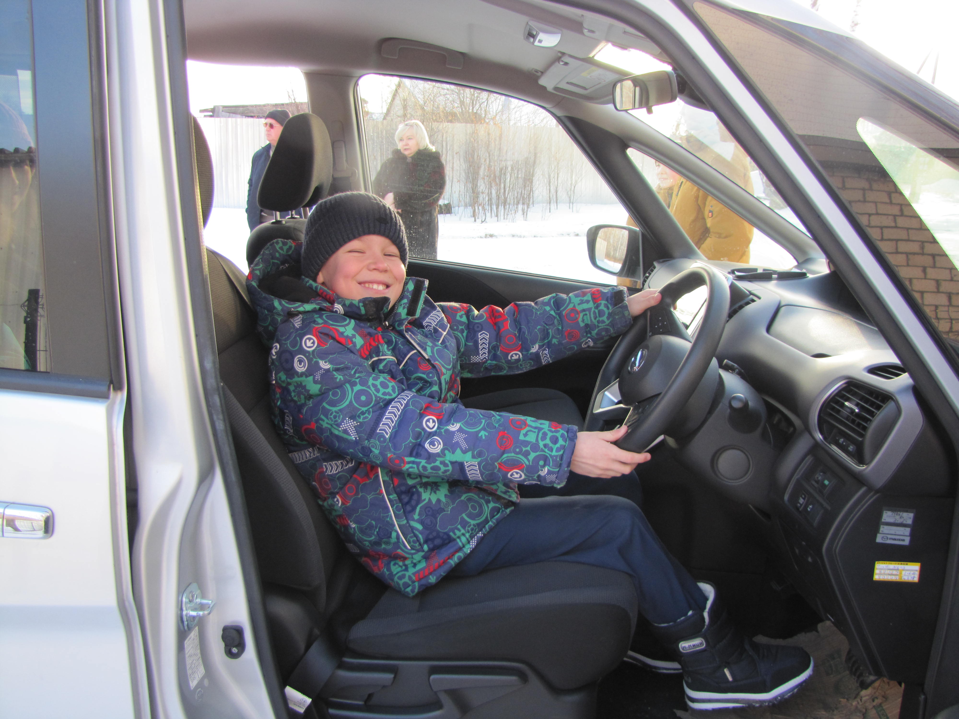 Cамый младший из приёмной семьи шестиклассник Алексей Власов с важностью садится за руль просторного автомобиля.