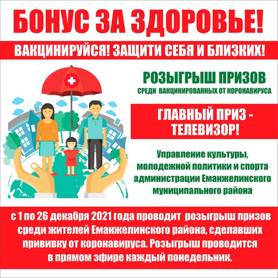Баннер администрации Еманжелинского района Чтобы вакцинация шла еще активнее, в Еманжелинском районе стартовала акция «Бонус за здоровье».