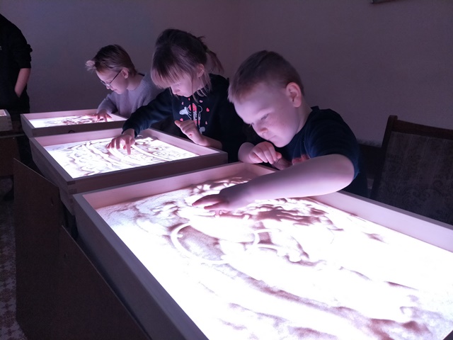 Уже в первую неделю работы творческого объединения были набраны 4 группы детей в возрасте от 5 до 15 лет, всего – около 40 человек, которые с горящими от восторга глазами учатся создавать свои первые песочные картины. Рисование песком – это маленькое волшебство, сам процесс проходит при приглушенном свете на белом оргстекле с подсветкой, что способствует созданию атмосферы таинственности, загадочности и рождения настоящего чуда.