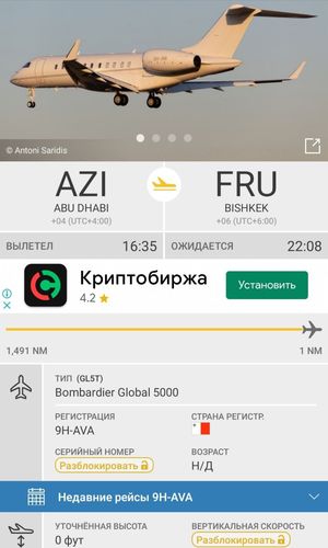 Bombardier Global Express прилетел в столицу Кыргызстана сегодня, 6 января, примерно в 22.10.