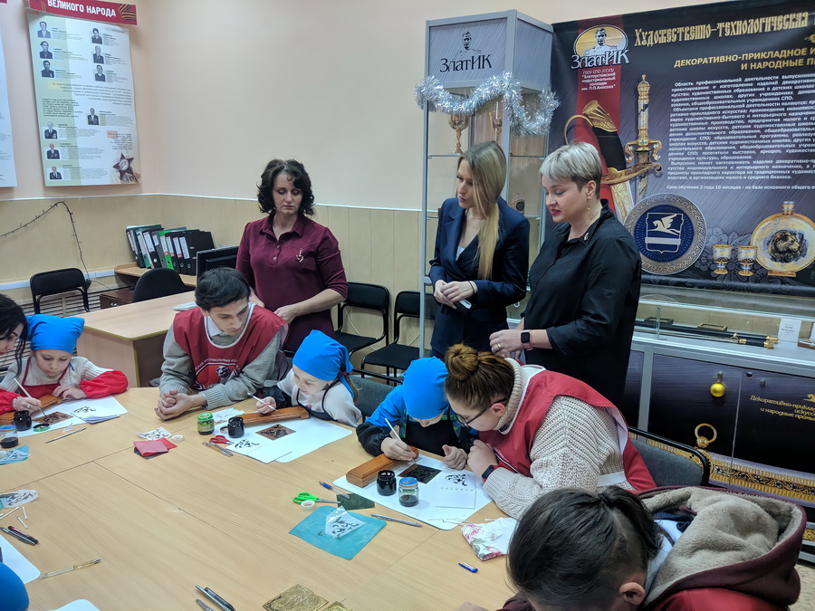 Известно: когда учишь сам, лучше запоминаешь материал. Поэтому в колледже практикуют занятия студентов с детьми из детских садов и школ. Освоив азы профессии, ребята охотно делятся навыками: они дают уроки рисования, обучают работе на специальном оборудовании.