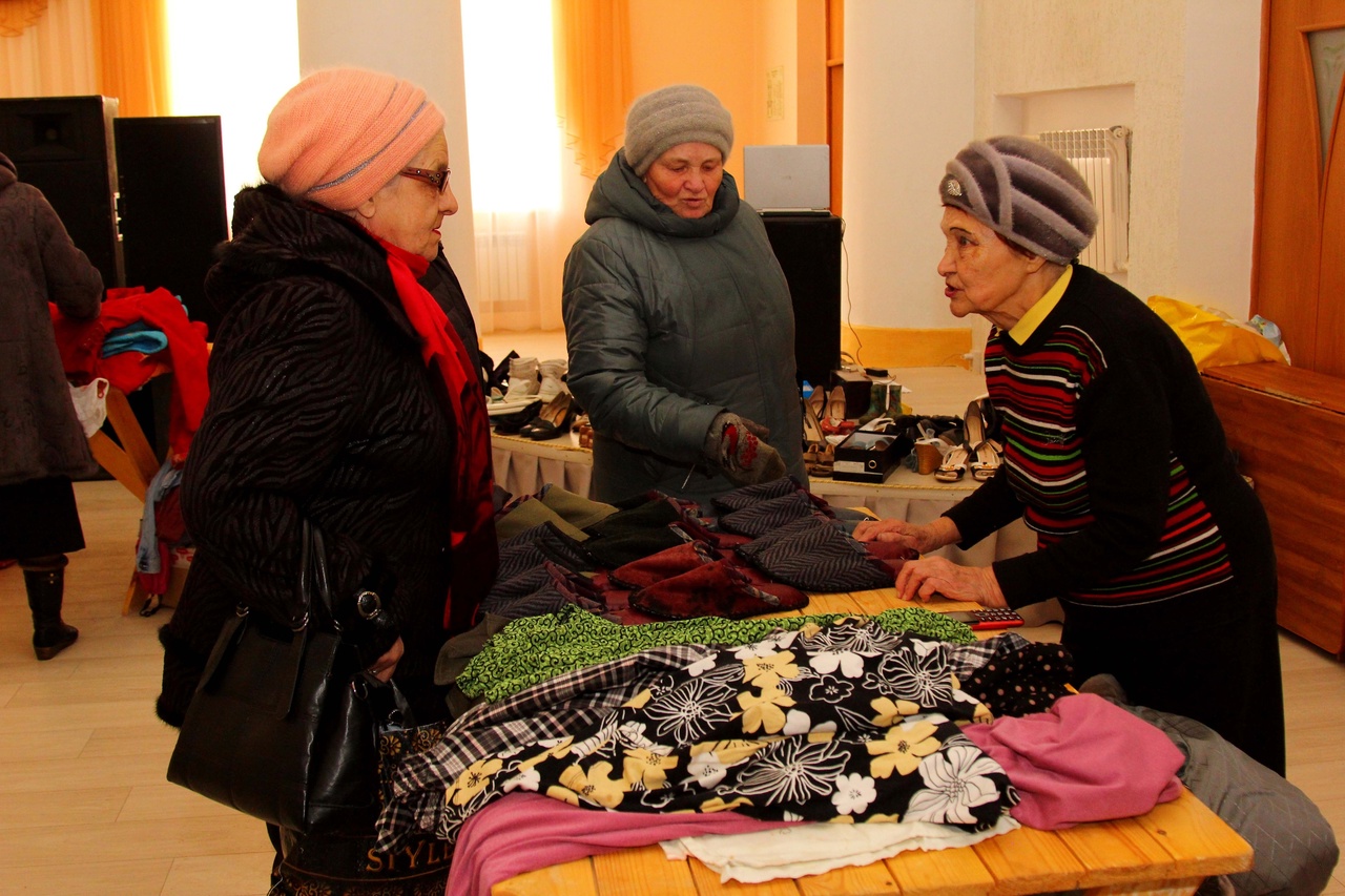 В Кусе прошла очередная благотворительная ярмарка «Семья семье поможет». Как обычно, помощь в организации ярмарки оказывали участницы районного Совета женщин – они помогали раскладывать одежду, поддерживать порядок, помогать в выборе тем, кто в этом нуждается.