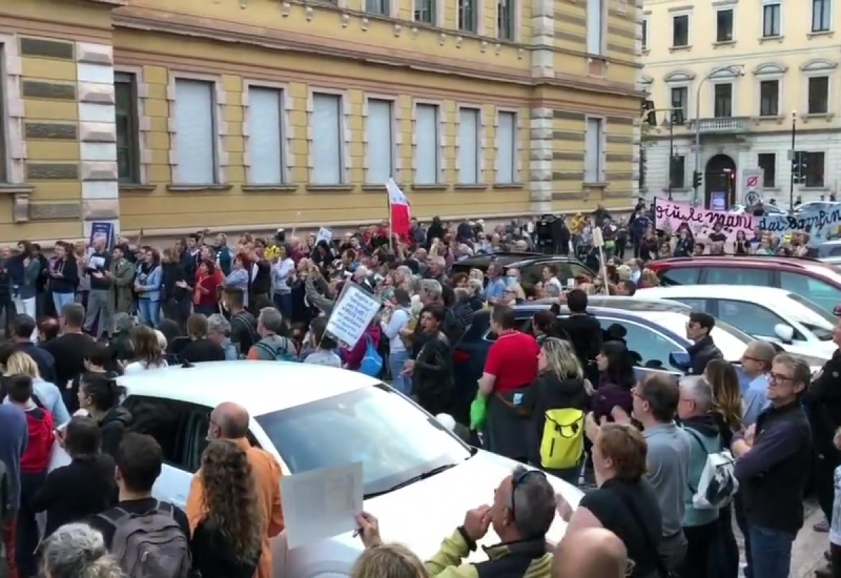 Сегодня в твиттере появилось видео, записанное в ходе вчерашней акции протеста возле государственного университета Тренто в Италии.