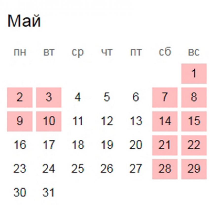 Так, к нерабочим праздничным дням относятся первое мая – День весны и труда, а также девятое мая – День Победы, уточнили в ведомстве.