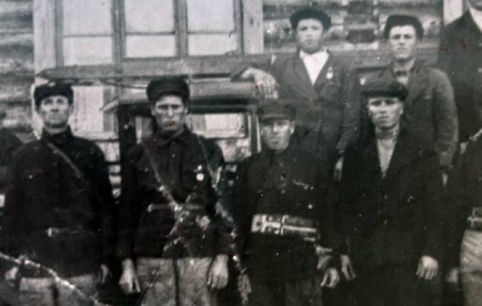 В семейном архиве родственники нашли фотографию, на которой запечатлены пожарные поселка. Среди них Иван Николаевич Белоногов третий слева.