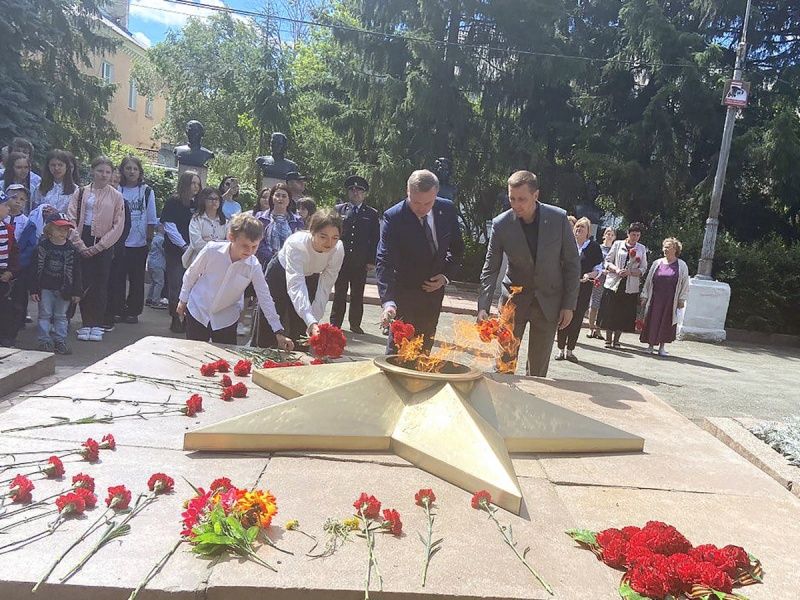 Участники мероприятия возложили цветы к Вечному огню.