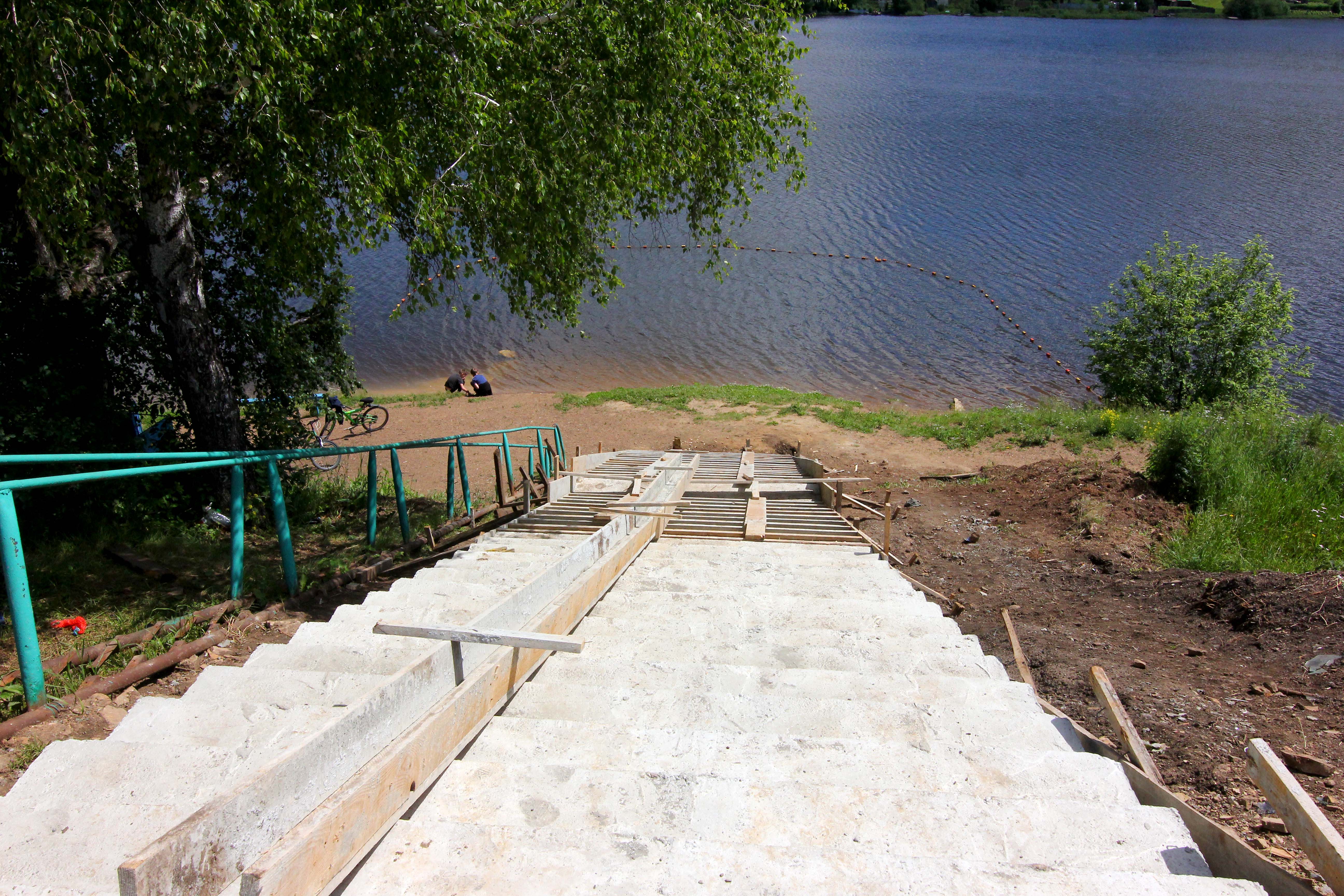 Сейчас строители Златоустовской компании ООО «Азия» занимаются оборудованием спуска к воде в центральной части горсада.
