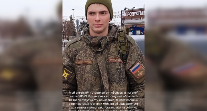 «Поганая армия убила моего сына. Его отравили в части, в поганом Мулино Нижегородская область. Продержали там сутки, [***] свою прикрывая. Поняв, что сами не спасут пять часов везли на реанимобиле в Москву. Произошло все 23 января, а 4 февраля моего сыночка не стало. Как мне жить без него?» – написала женщина на своей странице в соцсетях.