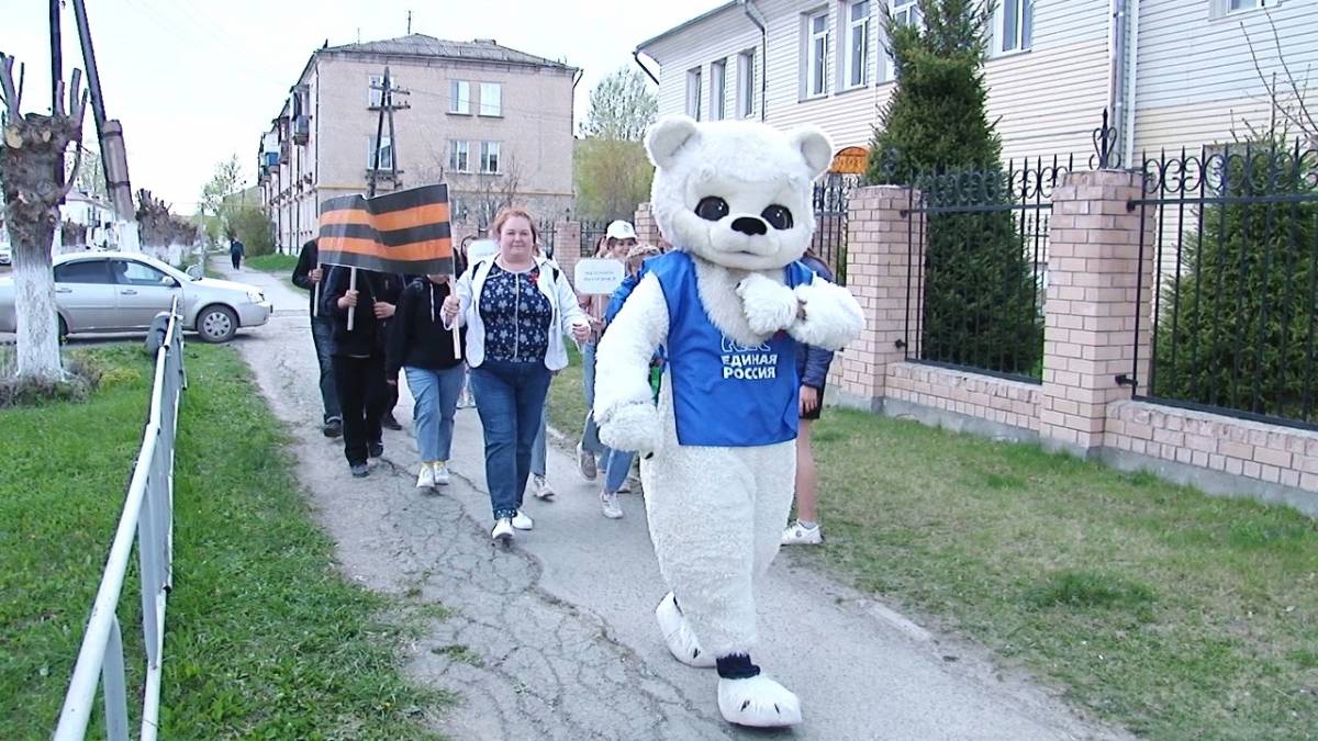В финале встречи участники класса дружной командой прошлись по улицам Еманжелинска и раздали Георгиевские ленты прохожим.