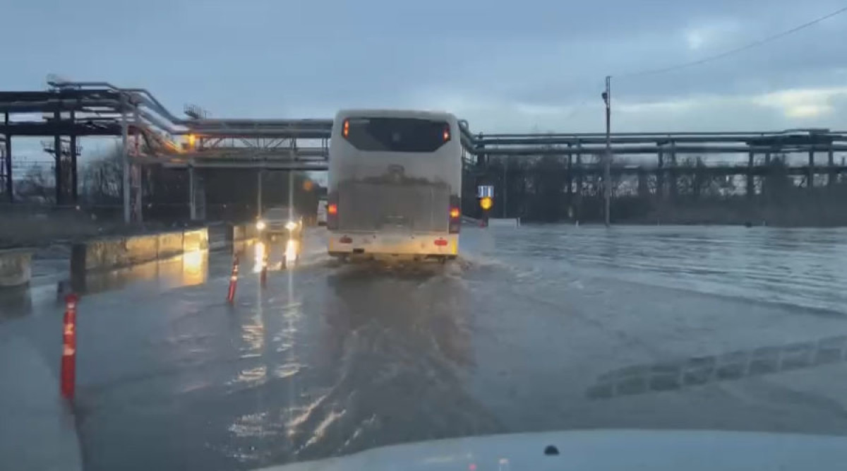 Автомобилисты с трудом преодолевали подтопленный участок на низкой скорости. Движение не было перекрыто.