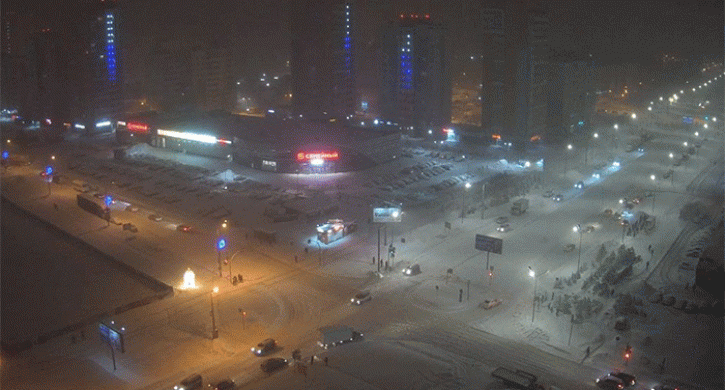 В 9.30 утра в центре города минус 22, влажность воздуха 64%, ветер северо-западный 7-13 м/с, атмосферное давление очень низкое – 730 мм ртутного столба при норме 743 мм.