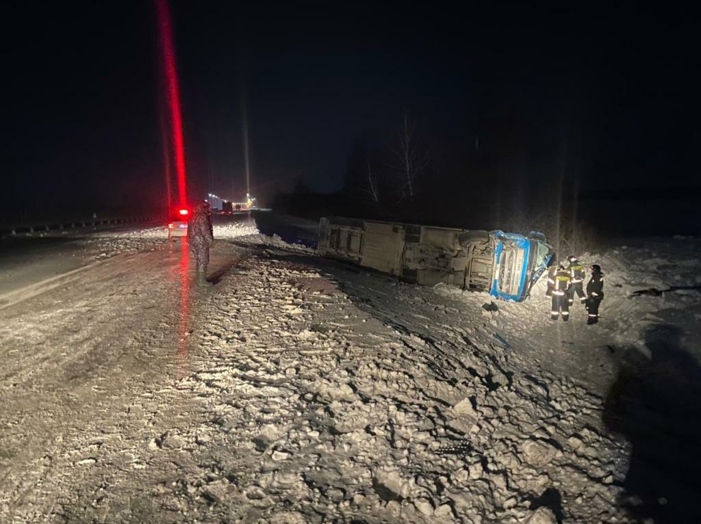 За рулем легкового автомобиля был мужчина 1976 года рождения. После удара грузовик съехал в правый кювет и опрокинулся, водитель погиб. Его личность устанавливается. Водитель «Нивы» в аварии не пострадал.