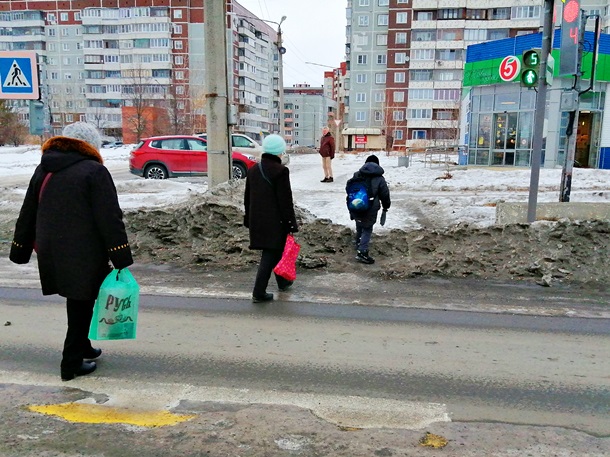 В Заозерном на светофоре невозможно подойти к тротуару со стороны дороги. Машина проехала, почистила дорогу, и образовался сугроб на переходе. Никому нет дела убрать этот сугроб, можно сломать ноги, и это уже давно.