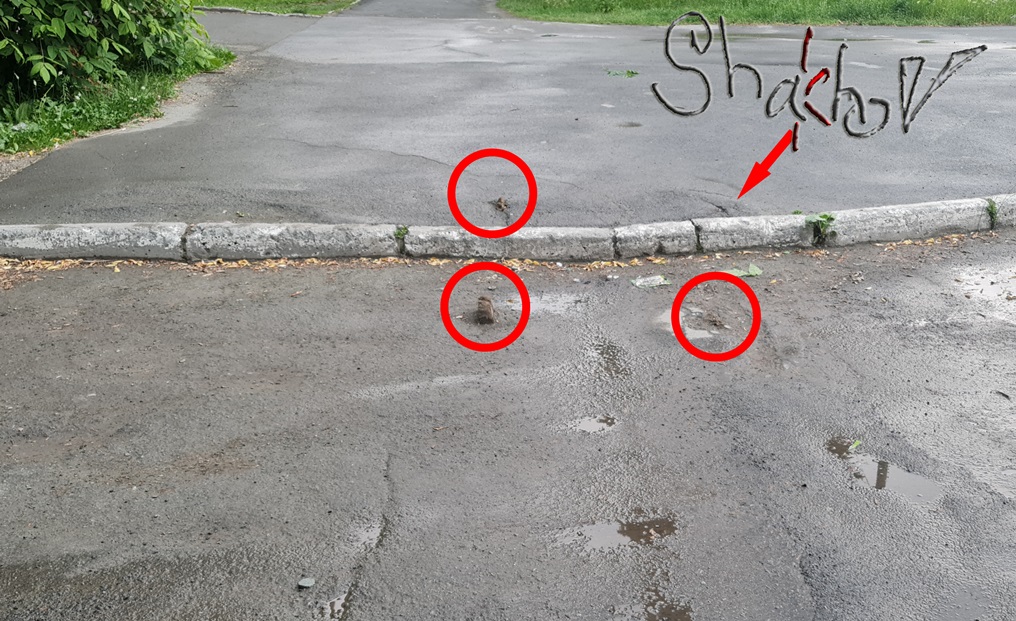 Что за небольшое строение было на этом месте, от которого остались эти доски, торчащие из асфальта? Две доски видны из асфальта отчетливо, а две другие - только при близком рассмотрении.