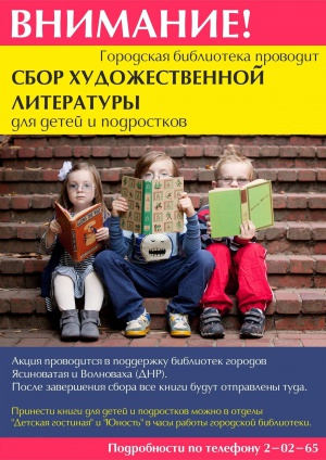 Оставить книги можно в отделах «Детская гостиная» и «Юность» в часы работы городской библиотеки. Подробности по телефонам 2-05-91 и 2-04-25.