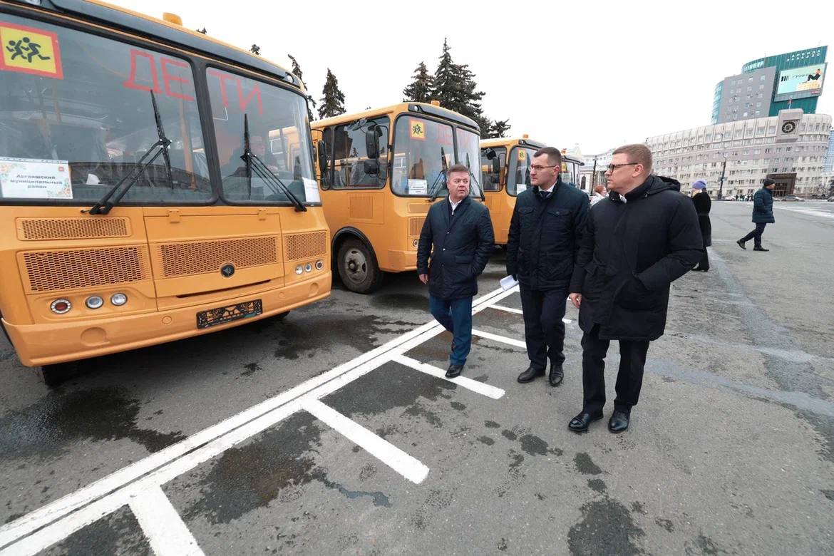 Сегодня на площади Революции в Челябинске состоялась передача нового транспорта для образовательных учреждений. Губернатор Алексей Текслер осмотрел автомобили перед их отправкой в муниципалитеты. Он отметил: «У нас достаточно большой регион, много детей добираются на учебу на школьных автобусах. Обеспечить их комфорт и безопасность - одна из важнейших задач. Поэтому мы на регулярной основе занимаемся обновлением школьных автобусов и будем продолжать эту работу».