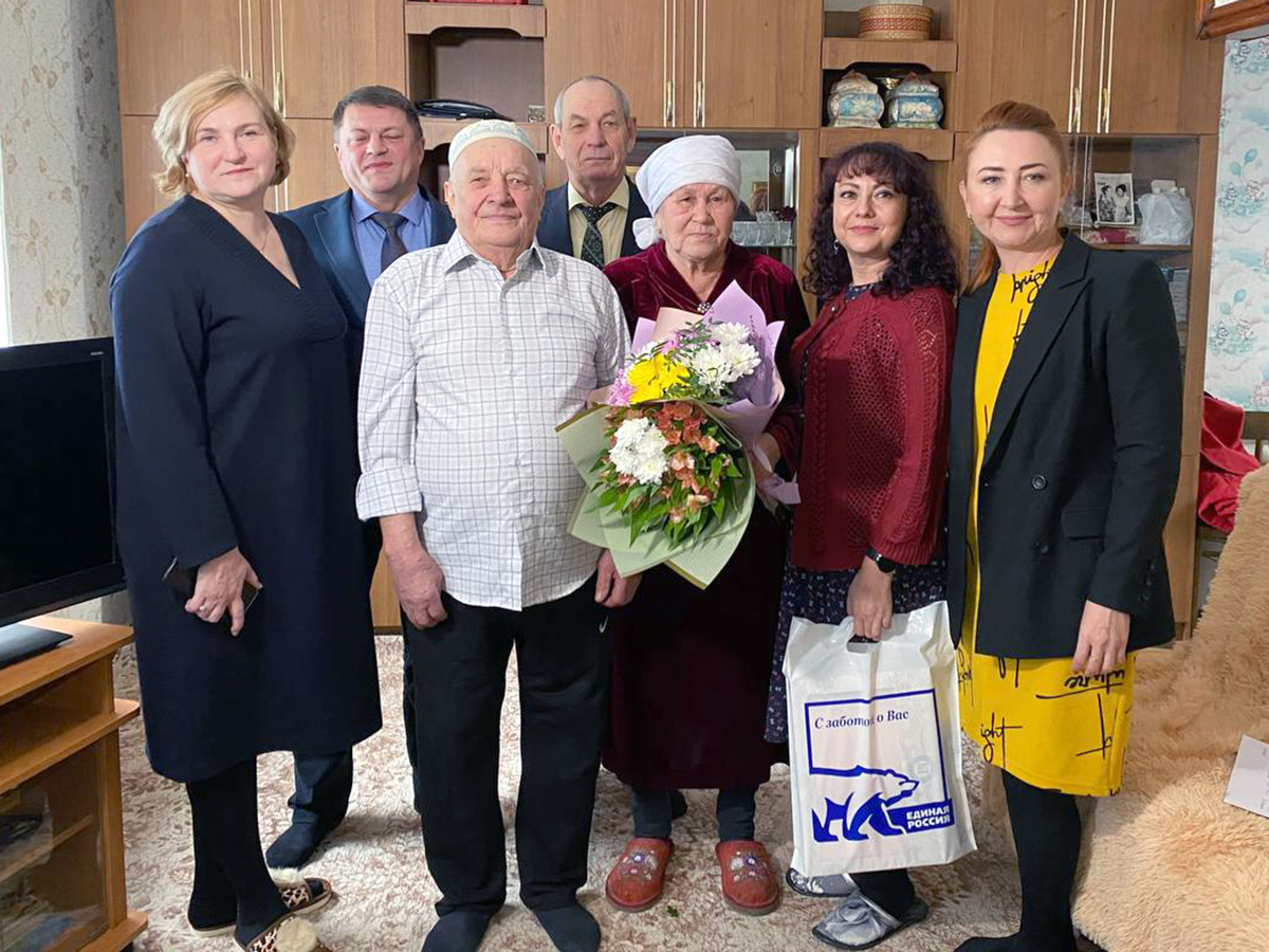 Сегодня, 12 января, заместитель главы по социальному развитию Светлана Логанова и начальник отдела ЗАГС Анастасия Карауланова поздравили с 60-летием брака чету Сибагатуллиных.