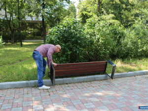 Сквер "Молодёжный" благоустроен был в несколько этапов в 2019-2021 годах. На территории нижней зоны сквера на скамьях отсутствуют бруски, крепление у основания, лакокрасочное покрытие пришло в негодность, нарушено покрытие из тротуарной плитки.