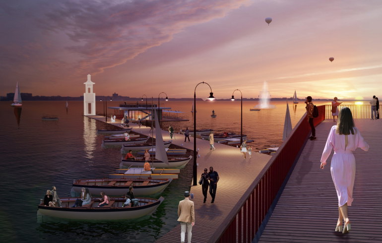На набережной построят детские и спортивные площадки, а также места для отдыха у воды. Проложат прогулочные и велосипедные дорожки и сеть тропинок с разным покрытием — брусчатка, несколько видов тротуарной плитки, деревянный настил и другие. Уличное освещение будет декоративным. Также планируются работы по укреплению берега.