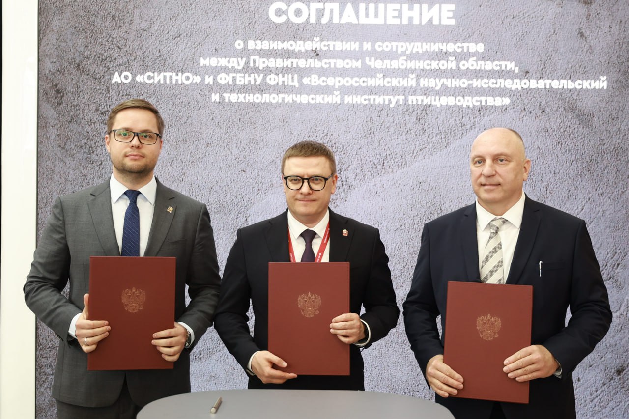 На полях Петербургского международного экономического форума состоялась встреча губернатора Челябинской области Алексея Текслера с директором Всероссийского научно-исследовательского и технологического института птицеводства Дмитрием Ефимовым и председателем совета директоров компании «СИТНО» Павлом Журавским. По итогам переговоров подписаны соглашения, в рамках которых планируется реализация импортозамещающих инвестпроектов в области селекции кур и наращивания производства макарон. «Это два важных соглашения связаны с развитием агропромышленного комплекса Челябинской области. Первое касается стратегического для нашей страны направления, связанного с генетикой птицы. Это вопросы импортозамещения и продовольственной безопасности. Мы активно поддерживаем эти направления, находимся в постоянном контакте с министерством сельского хозяйства России. Уверен, что мы сможем покрыть потребности своего и ближайших регионов в отечественной генетике. Второе соглашение касается развития производства макарон в регионе. Регион лидирует по стране в этом направлении, а «Ситно» активно участвует в этом процессе. Благодаря новому инвестпроекту компания увеличит объемы продукции почти в два раза», - отметил Алексей Текслер.