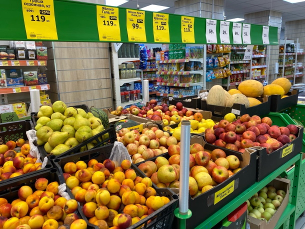 В честь праздника покупателям предлагают ароматные персики и нектарины с привкусом пенициллина. И вкусно, и невероятно полезно для здоровья, особенно в ковидные времена. А летающие вокруг мошки делают выбор продуктов не таким скучным и однообразным.