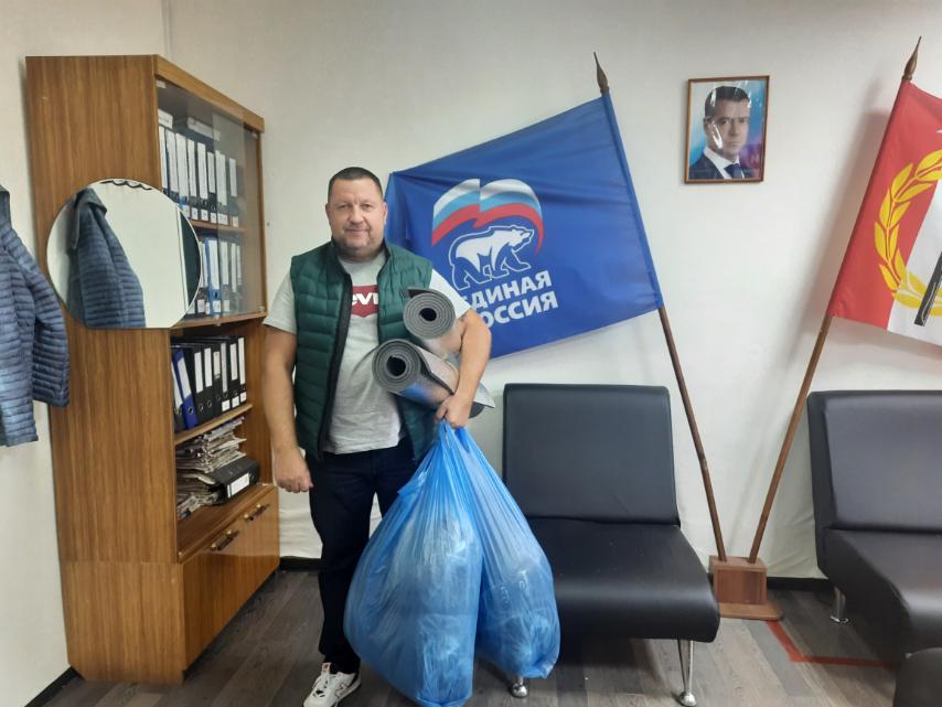Активный житель Копейска Сергей Рагулин принял участие в отправке гуманитарного груза для наших солдат – он принес в отделение партии «Единая Россия» 4 спальных мешка и 2 коврика-пенки.