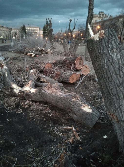Ранее в соцсетях магнитогорцы публиковали фотографии из сквера Металлургов. Сейчас там начали реконструкцию — первым делом приступили к обрезке и спилу деревьев. Это возмутило некоторых местных жителей.