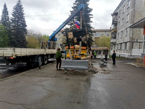 В последние несколько дней около магазина «Универмаг» шли какие-то работы, читатели сообщали, что рабочие сдвинули все скамейки, что-то делали на поверхности асфальта.