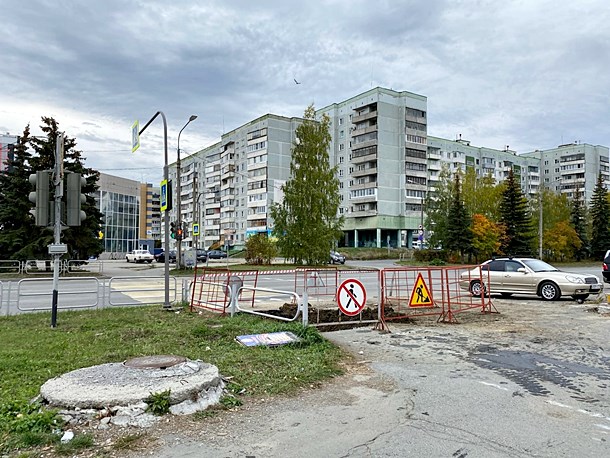 Недавно появилась очередная яма у рынка по Карла Маркса, 1. По прилегающей местности "гуляет" сильный запах канализации.