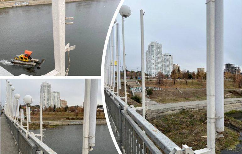 На Свердловском проспекте украли элементы архитектурно-художественной подсветки моста через реку Миасс, испортив крепления.