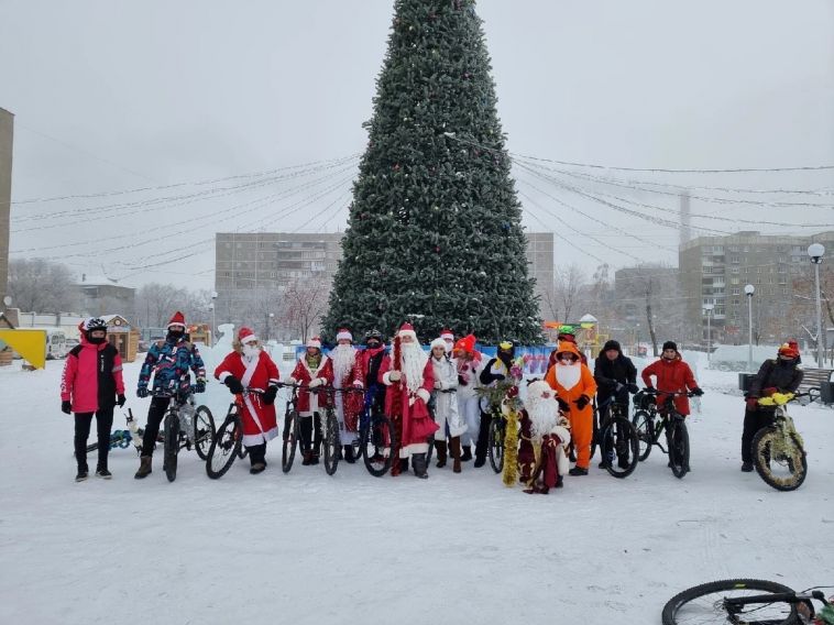В Магнитогорске заметили колонну Дедов Морозов на велосипедах