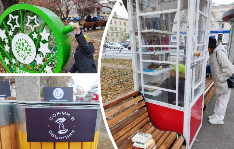 В обновлённом сквере в Челябинске установили будку для обмена книгами и экоконтейнеры