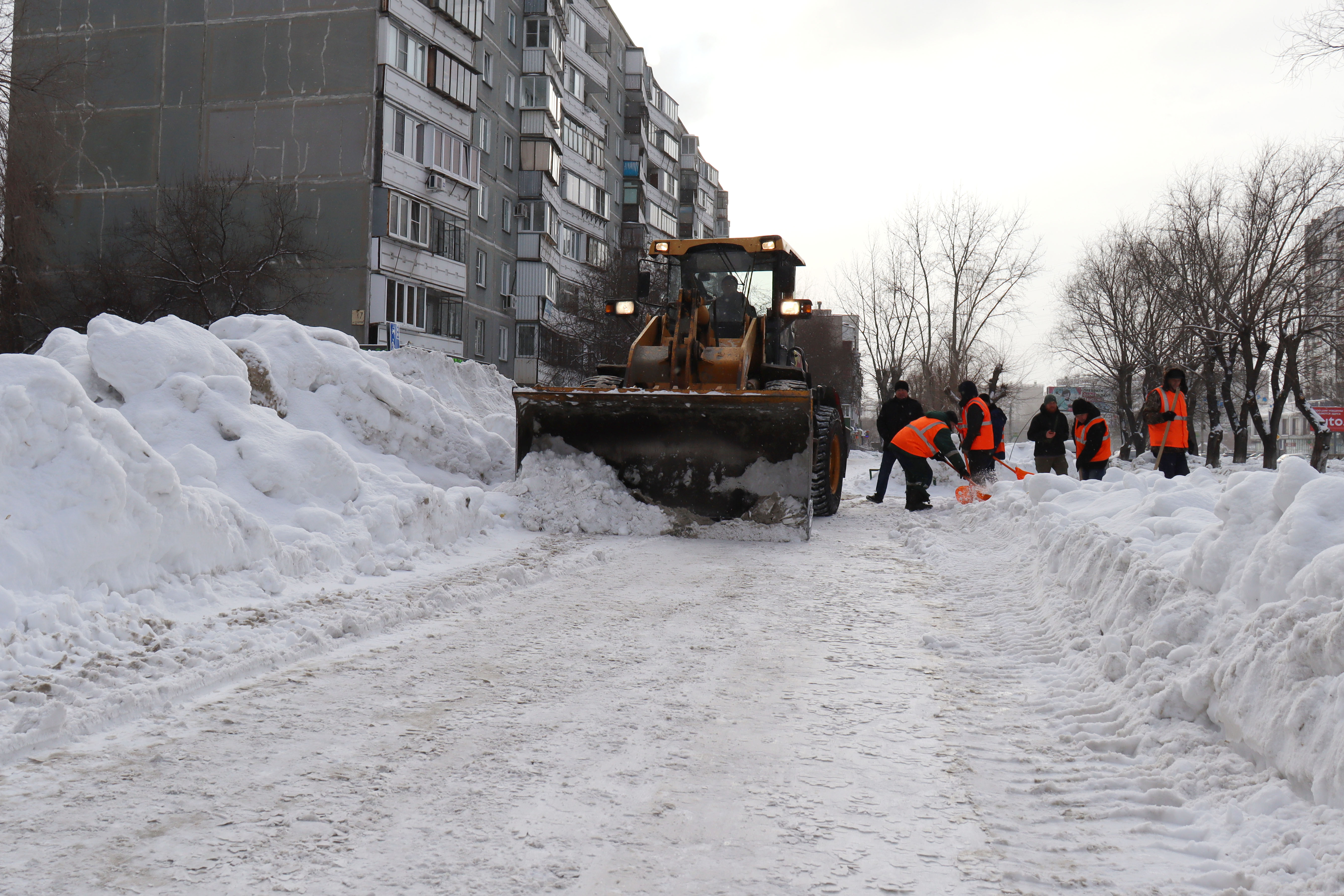В Тракторозаводском районе расчищают тротуары от снега