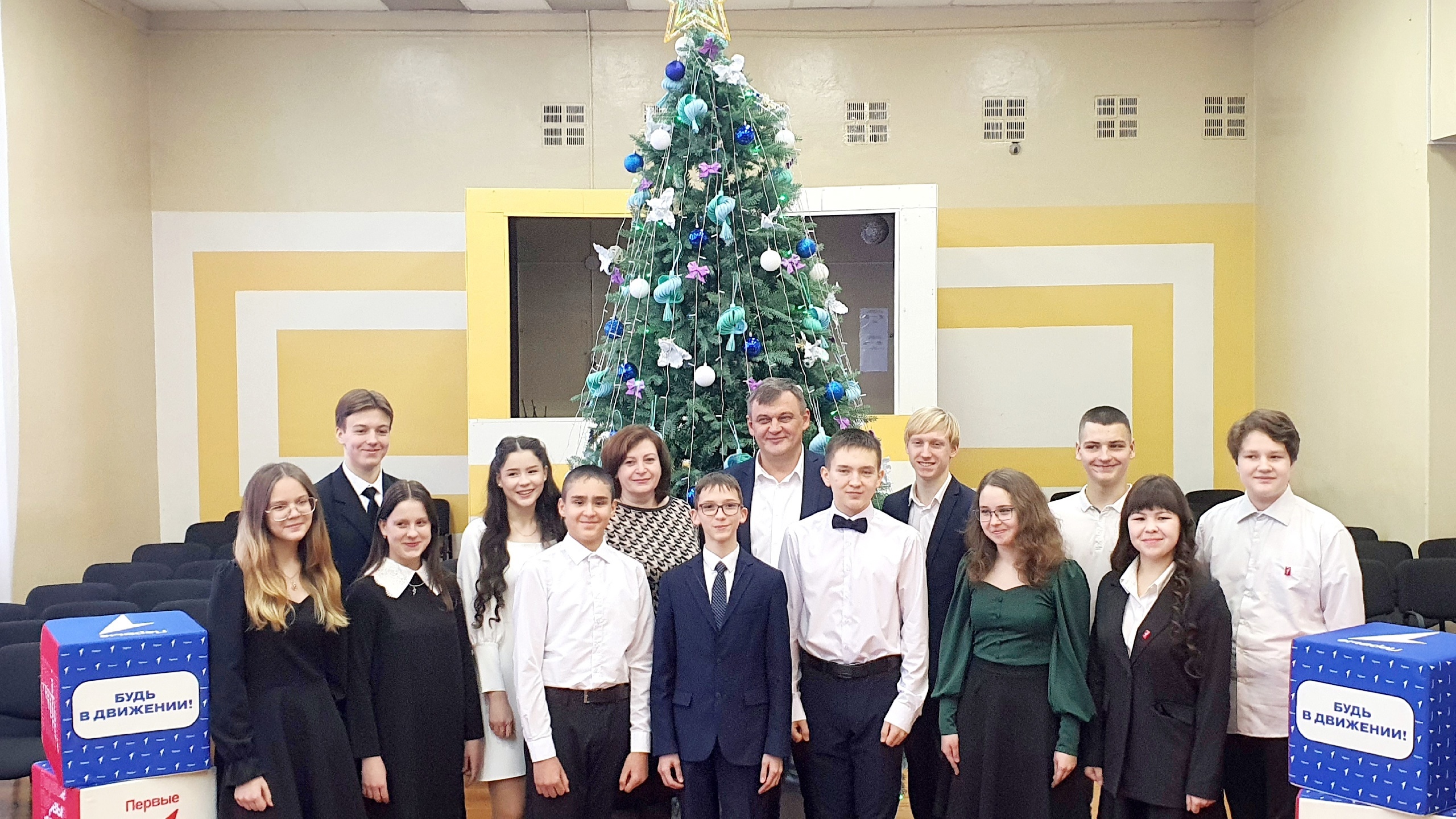 с отличившимися в учебном году ребятами. Все дети - победители различных конкурсов, олимпиад и спортивных состязаний, активисты Движения первых, участники научных конференций и авторы социальных проектов.