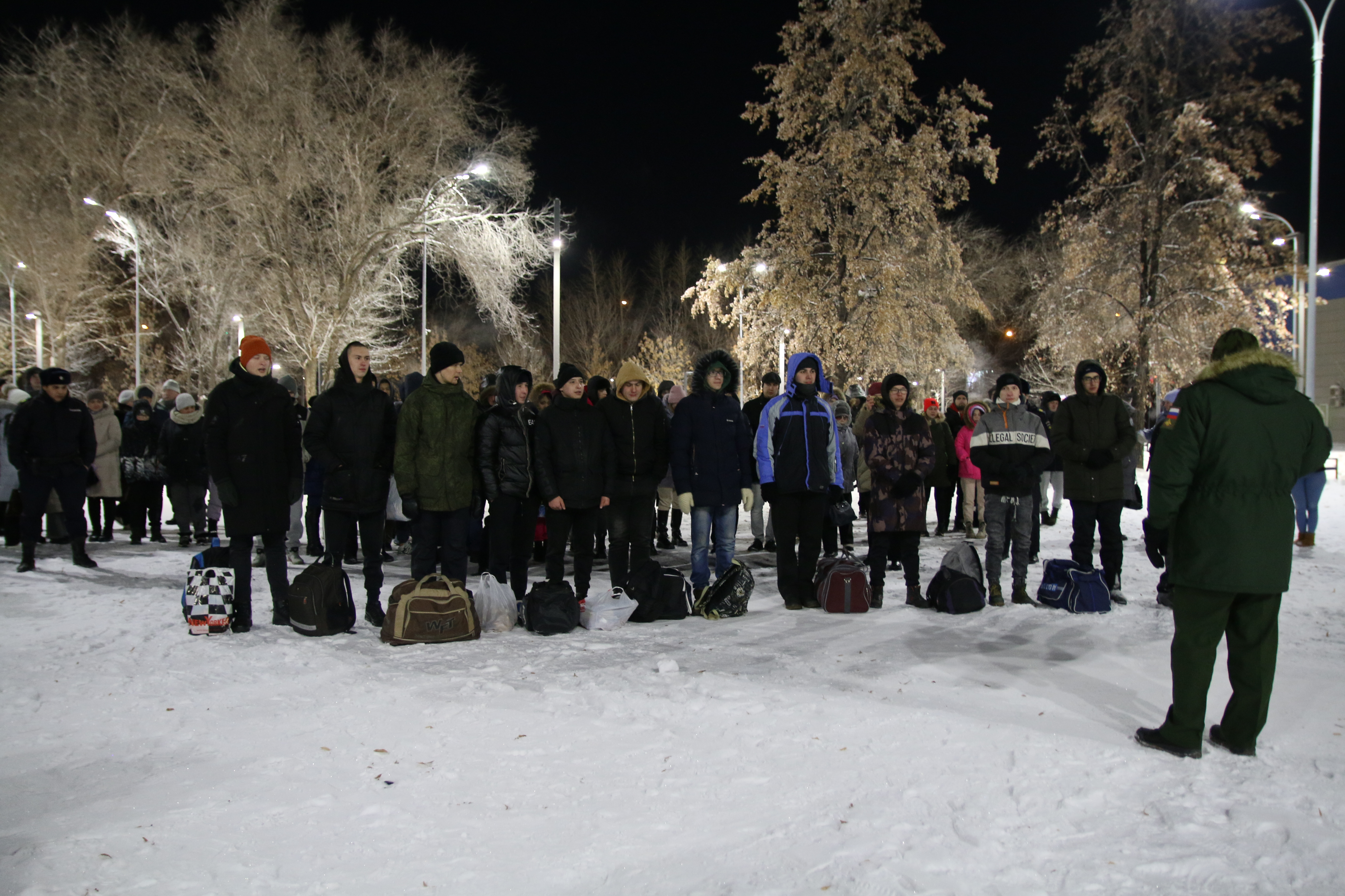 Ранним утром в пятницу, 9 декабря, молодые люди, призванные на службу в ряды Вооруженных сил РФ, собрались на территории сквера «Патриотический» в ожидании отправки в областной сборный пункт.