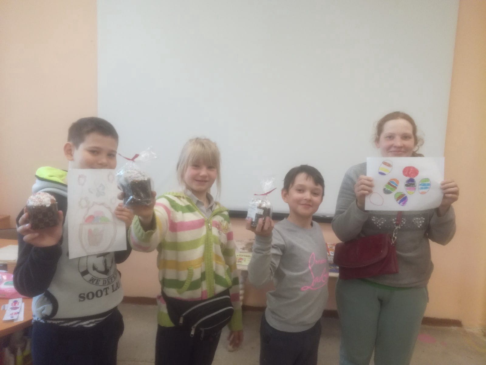 Ольга рассказала детям от куда к нам пришел этот праздник, как его празднуют, какие традиции есть и были. Кроме того, ребята узнали, что каждый цвет покраски яиц принимает своё значение. После чего дети нарисовали как именно они видят этот праздник. Под конец мероприятия Ольга подарила ребятам куличик!