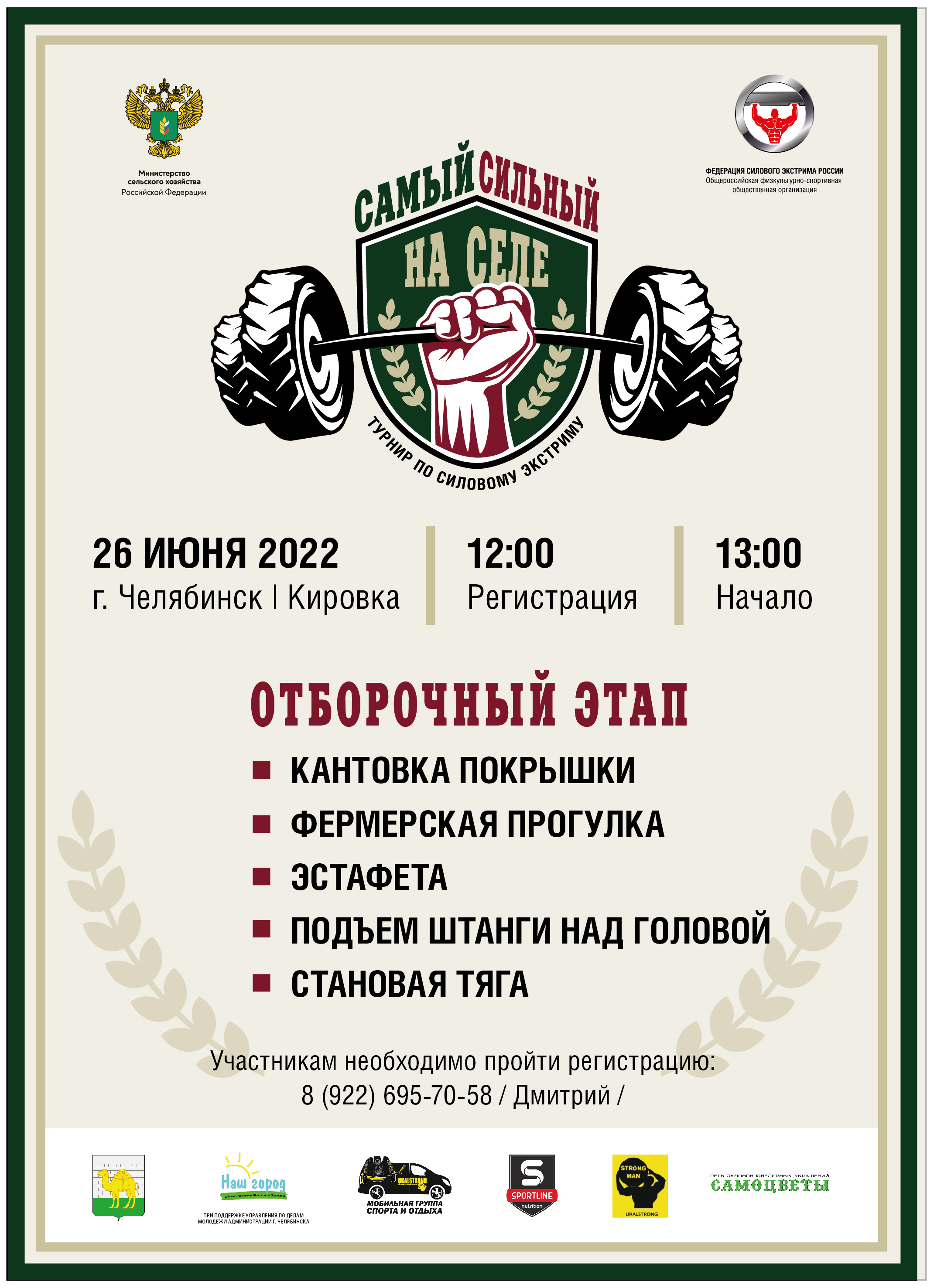 Сегодня, 26 июня, в Челябинске состоится этап региональной серии любительских турниров по силовому экстриму среди сельского населения «Самый сильный на селе» – принять участие в турнире могут все желающие старше 18 лет,