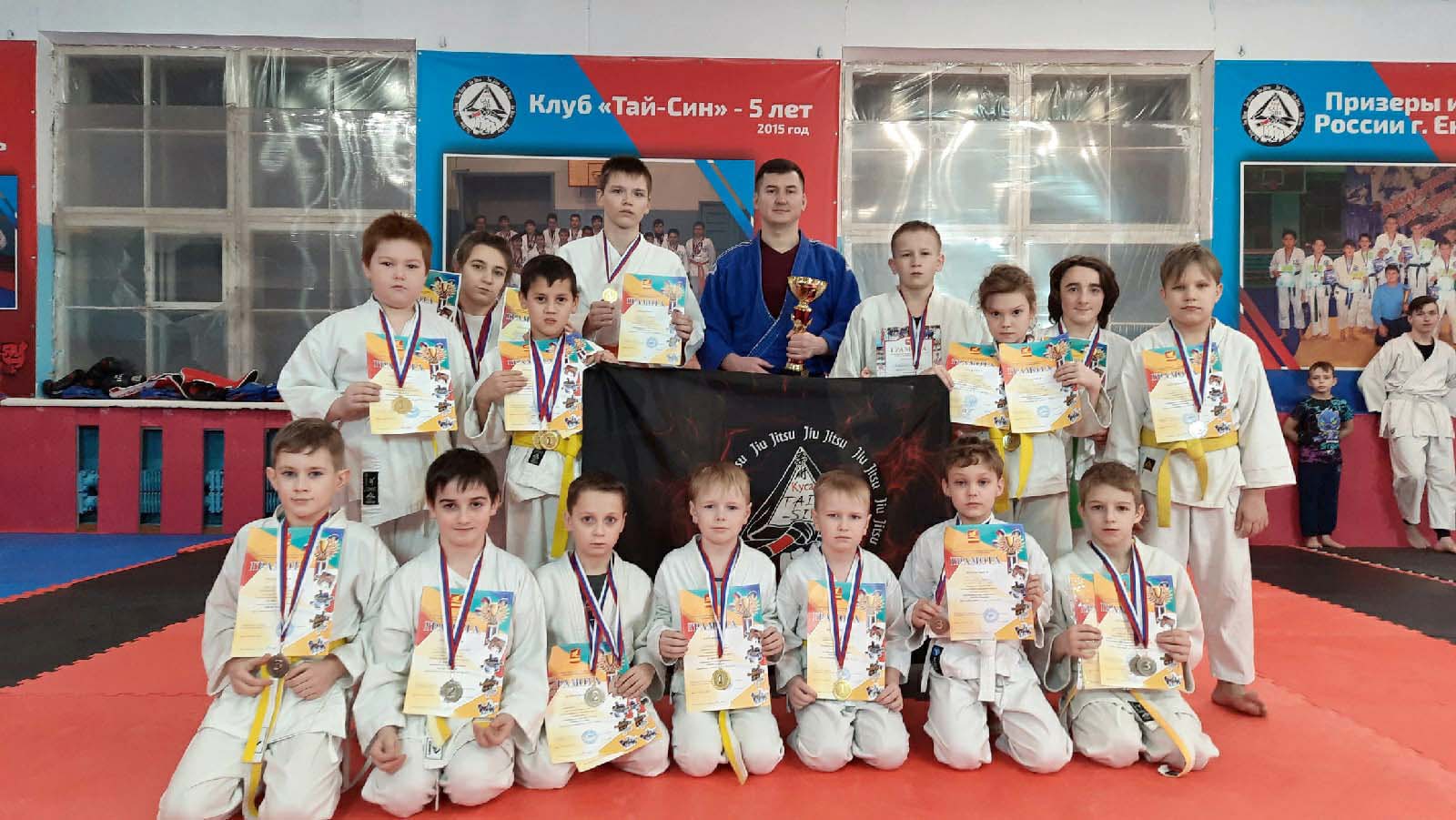 Наши ребята завоевали кубок лучшей команды на Первенстве Златоустовского городского округа по джиу-джитсу. Соревнование было посвящено дню образования ОМОН «Булат» и собрало более ста спортсменов из шести спортивных клубов Челябинской области. Кусу представили 17 ребят из клуба «Тай-Син» (ЦВР «Ровесник»). Команда привезла домой 21 медаль, 10 из которых – золотые. Трое участников завоевали по две медали, успешно выступив в двух весовых категориях.