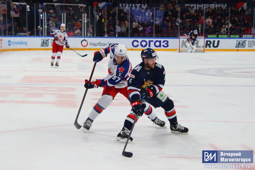 Магнитогорский " Металлург " на домашнем льду оказался сильнее московского ЦСКА . Матч завершился со счётом 2:1 в пользу хозяев.