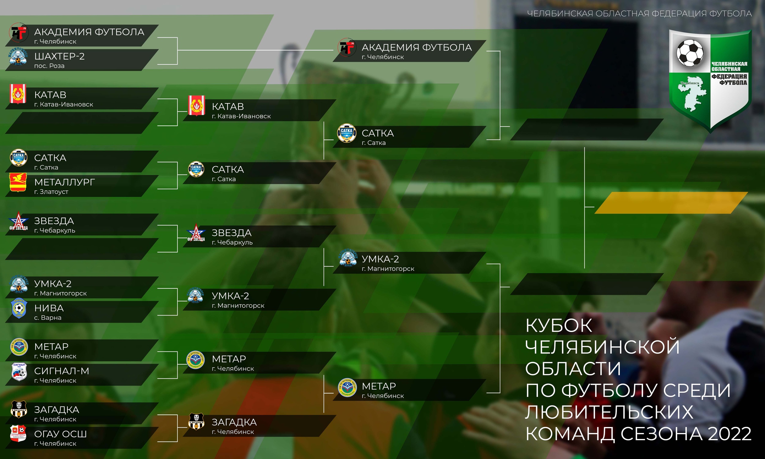 Сетка кубка Челябинской области по футболу среди любительских команд на данный момент.